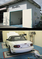 実走中のエンジン性能を測定するためには、シャシーダイナモテスターが必要不可欠です。実走行での測定は、時間と危険をともなうばかりで納得のいくレベルに達するのは難しいのが現状です(とはいえ実走行のテストも必要です)。当社の2ローラータイプのシャシーダイナモは高次元での測定が可能となり、1ローラーのみの測定誤差の出やすいタイプをあらゆる面で凌駕します。エンジン性能を非常に正確に測定できるのが特徴の一つです。パワーの大小にこだわるのではなく、キチンとしたセッティングが出来るか否かが、このシャシーダイナモの最大の役割だと考えます。