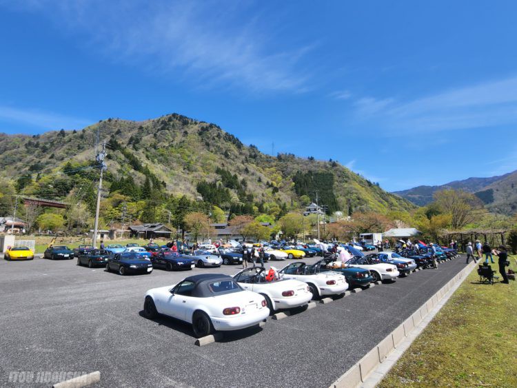 4/12(日)、藤橋城・西美濃プラネタリューム駐車場にてロードスターミーティングが開催され伊藤自動車として参加をしてきました。去年10月に開催予定でしたが、当日豪雨で中止。今回はとても良い天気となり多くのお客様で賑わい、NA・NB・ND合わせて約80台のロードスターが集まりました。