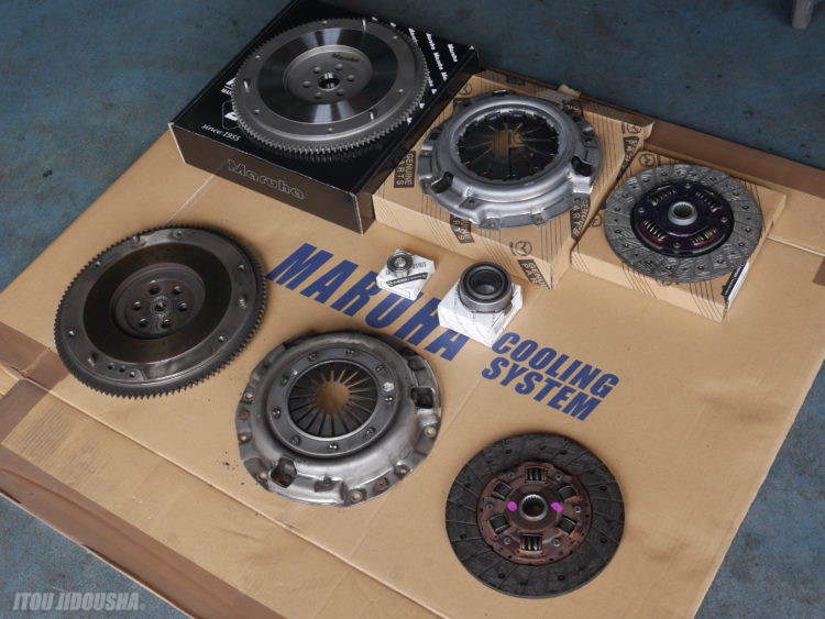NA6のお客様よりクラッチ交換とブレーキリフレッシュの依頼を受けました。クラッチは軽量フライホイールに純正クラッチセットで作業をします。