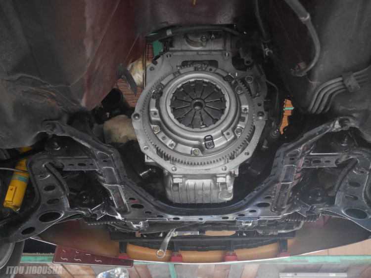 ミッション側はスチーム洗浄後、レリーズベアリングを取り付けして車両へと搭載しクラッチ交換は終了。