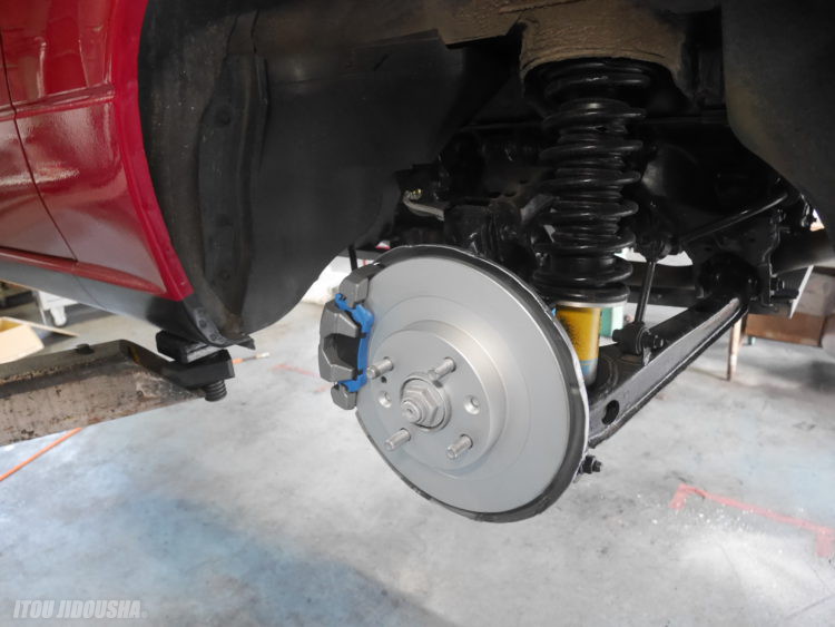 リヤも同様に組み付けし、最後にブレーキエアー抜きをしてすべての作業が終了です。(岐阜県美濃加茂市在住のお客様)