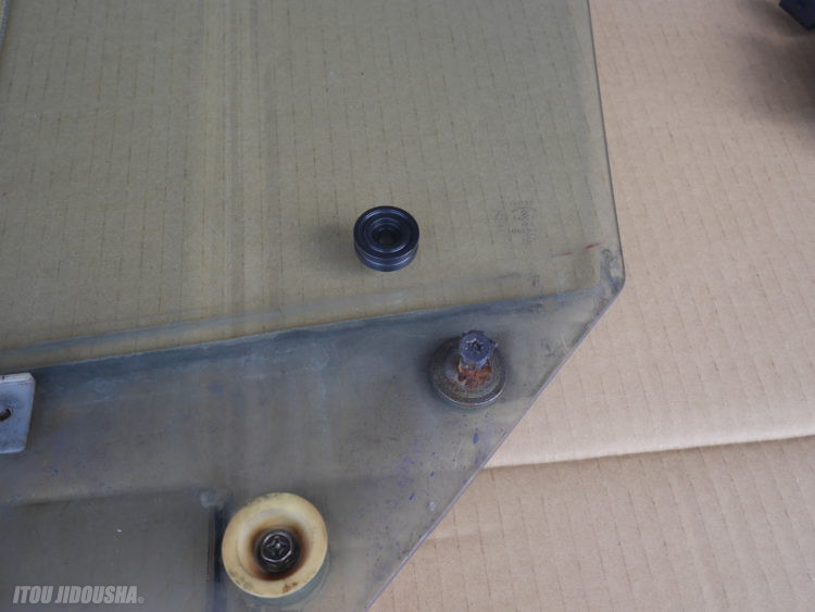 ガイドレール樹脂カラーも粉々で原型がありません。樹脂カラー・ドアスプリングも同時交換します。