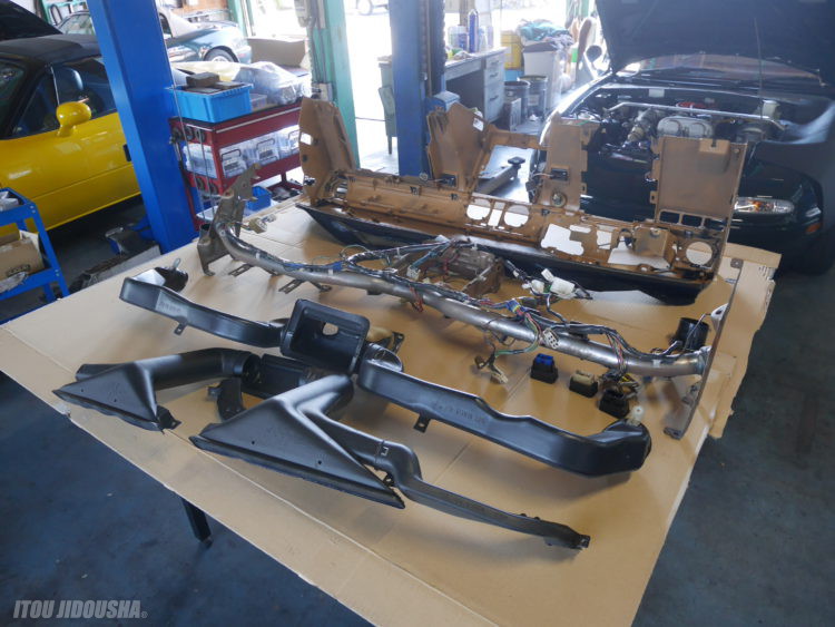 脱着したダッシュボードは分解して、クラッシュメンバーやエアーダクトは清掃後に新品ダッシュへと取り付けします。