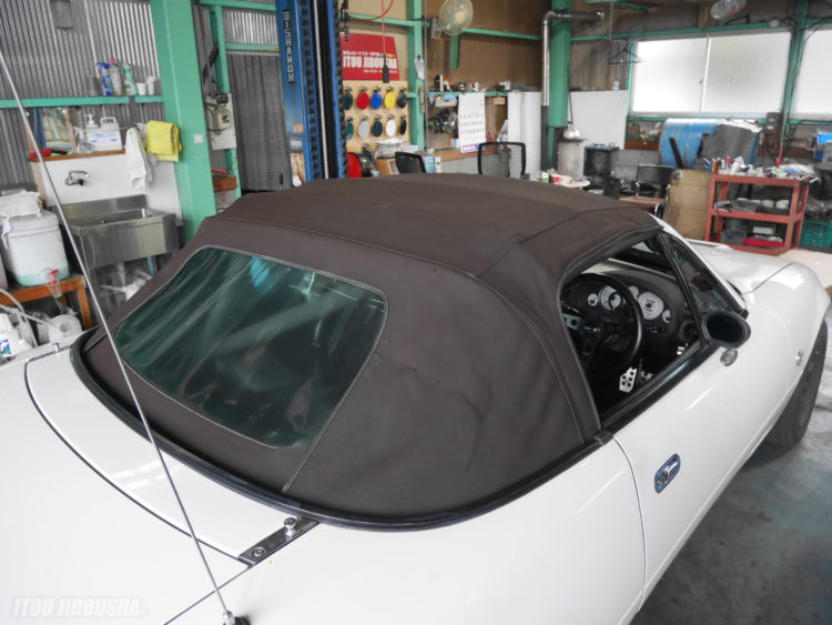 NA6常連のお客様から幌を持込で交換してほしいと依頼され、一度幌を見せてもらいました。マルハ幌にとても似ている物で以前もマルハ幌で作業をさせてもらいましたので依頼を受けました。