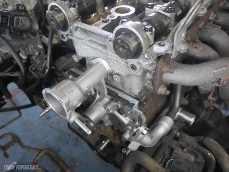 新品のウォーターポンプ・サイドハウジング・サーモケースを取り付けし、どんどん組み上げていきます。