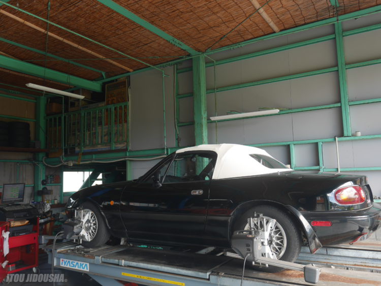各アームの1G締めの後、車高調整をしてしばしテスト走行をします。車高が落ち着いた所でアライメント調整をおこないすべての作業が終了です。今現在、慣らし運転をしてオイル漏れがないかをチェックしています。この後、全塗装が控えています。(静岡県浜松市在住のお客様)