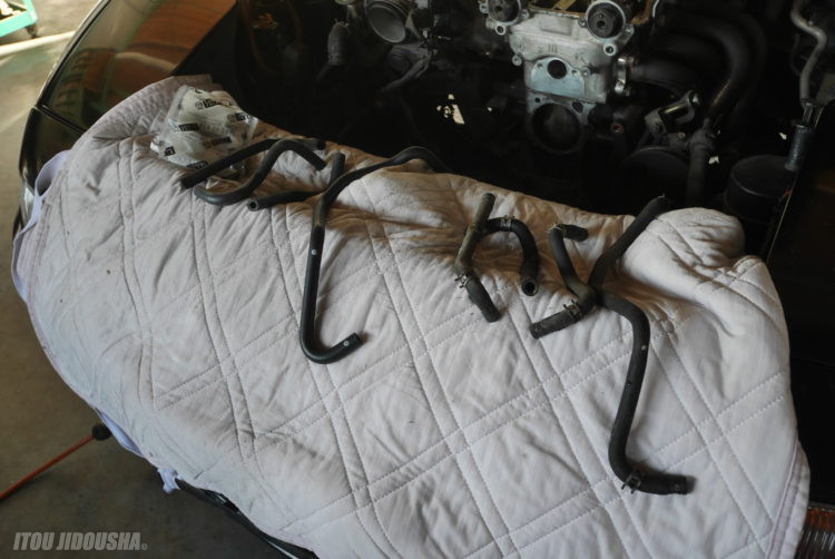ラジエータは交換済みでしたので、ラジエータホースやウォーターバイパスホース等は交換します。