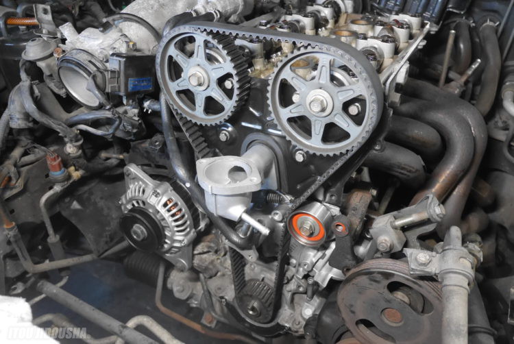 NA6のお客様から一時抹消をしてから3年程たち、ぼちぼち乗りたいので相談に乗ってほしいと連絡をいただきました。一度、工場にお邪魔しますと後日ご来店されお話を聞きました。そこで作業内容を決め、後日見積もりを作成しお車の入庫時期もおよそで決めさせていただきました。作業内容はタイミングベルト交換・オルタネータ・バッテリー・ブレーキコンバージョン・車高調・フルブッシュ交換・タイヤ・全塗装とてんこ盛りです。順番に作業をしていきますがまずはタイミングベルトから始めます。