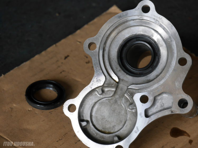 フロントカバーを脱着してオイルシールを交換しガスケットを付けて取り付けします。その後、レリーズベアリングを取り付けしMT側はOk。